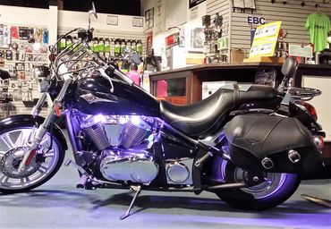 Converting your motorcycle lighting from the standard offerings to LED offers a safer ride for you and your passenger and even oncoming traffic. But, why stop there? Add some colored accent lighting (See gallery below) to give it some pop, especially at night!